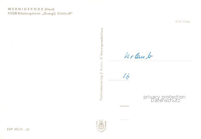 73543817 Wernigerode Harz FDGB Erholungsheim Georgij Dimitroff postalisch nicht gelaufen Erhaltung siehe scans [FriedD77] KatCode: 11110015085370