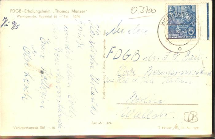 40976804 Wernigerode Harz FDGB Erholungsheim Thomas Münzer KatCode 11110015085370