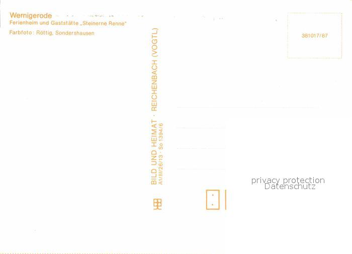 72851064 Wernigerode Harz Ferienheim Gaststaette Steinerne Renne postalisch nicht gelaufen Erhaltung siehe scans [NatalD47] KatCode: 11110015085370