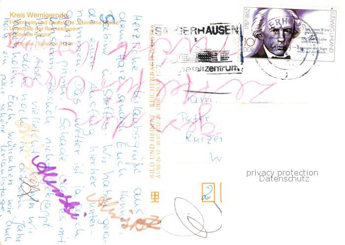 72947290 alte Postkarte Wernigerode Harz Ferienheim Steinerne Renne Renneklippen Steinerne Renne postalisch gelaufen Erhaltung siehe scans [WerneD78] KatCode: 11110015085370