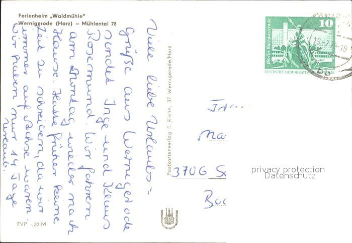 72427779 alte Postkarte Wernigerode Harz Ferienheim Waldmuehle Speisesaal postalisch gelaufen Erhaltung siehe scans KatCode: 11110015085370
