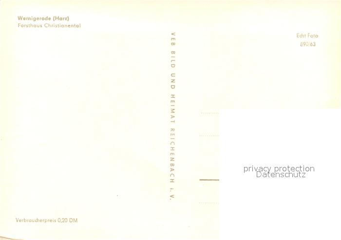 72918639 Wernigerode Harz Forsthaus Christianental postalisch nicht gelaufen Erhaltung siehe scans [LiesaD40] KatCode: 11110015085370