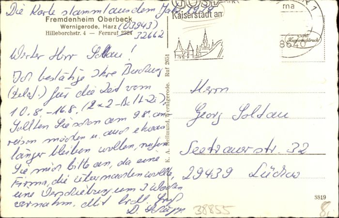30727488 alte Postkarte Wernigerode Harz Fremdenheim Oberbeck postalisch gelaufen KatCode: 11110015085370
