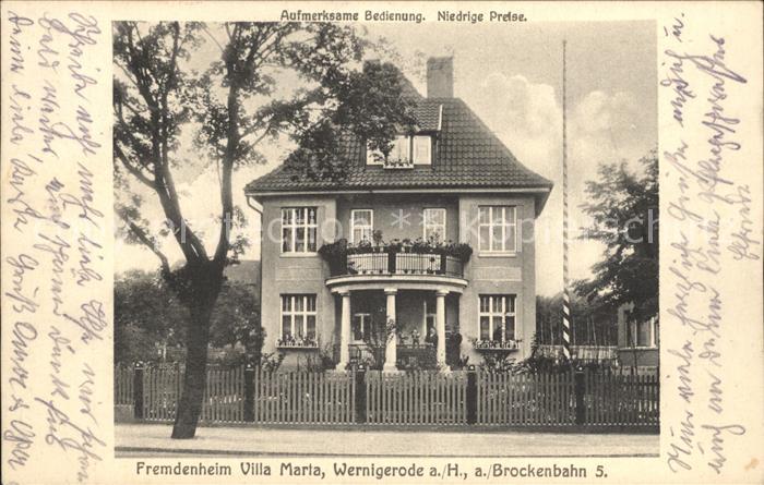 32186073 alte Postkarte Wernigerode Harz Fremdenheim Villa Marta postalisch gelaufen Erhaltung siehe scans KatCode: 11110015085370