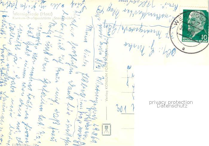 73142852 alte Postkarte Wernigerode Harz Gaststaette Storchmuehle postalisch gelaufen Erhaltung siehe scans [NatalD47] KatCode: 11110015085370