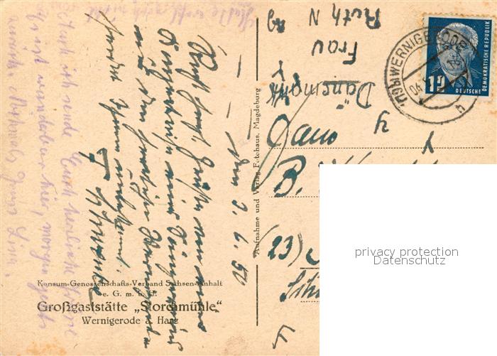 33046556 alte Postkarte Wernigerode Harz Grossgaststaette Storchmuehle postalisch gelaufen Erhaltung siehe scans [NatalD47] KatCode: 11110015085370