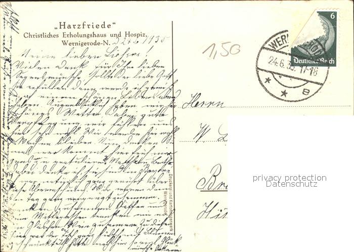 72078180 alte Postkarte Wernigerode Harz Harzfriede Christliches Erholungsheim Hospiz postalisch gelaufen Erhaltung siehe scans KatCode: 11110015085370