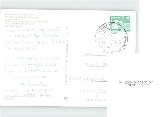 72185018 alte Postkarte Wernigerode Harz Harzquerbahn HO- Gaststaette Christianental Steinerne Renne postalisch gelaufen Erhaltung siehe scans KatCode: 11110015085370