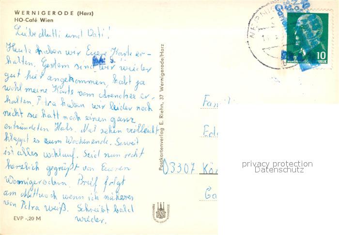 73163522 alte Postkarte Wernigerode Harz HO Cafe Wien postalisch gelaufen Erhaltung siehe scans [WerneD78] KatCode: 11110015085370