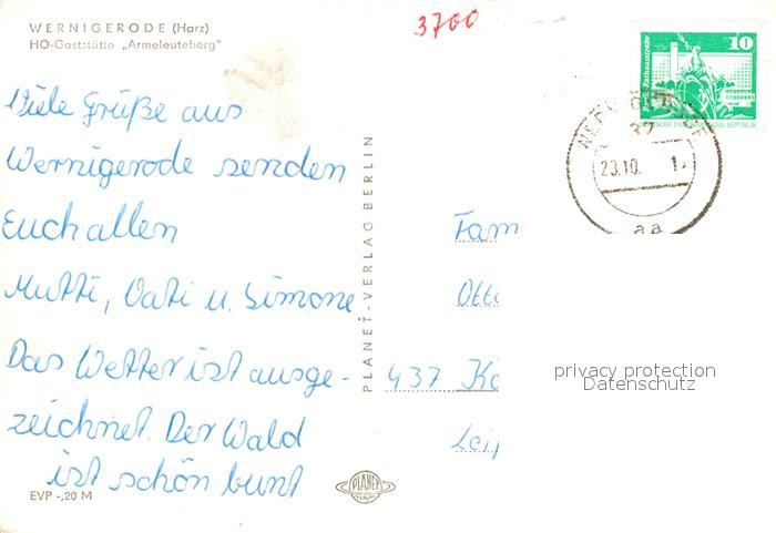 72917393 alte Postkarte Wernigerode Harz HO-Gaststaette Armeleuteberg postalisch gelaufen Erhaltung siehe scans [PaolaD17] KatCode: 11110015085370