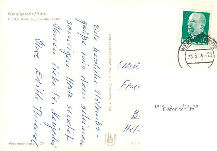 73134413 alte Postkarte Wernigerode Harz HO Gaststaette Christianental postalisch gelaufen Erhaltung siehe scans [FriedD77] KatCode: 11110015085370