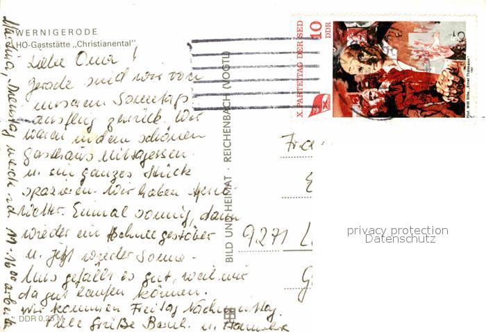 72728536 alte Postkarte Wernigerode Harz HO Gaststaette Christianental postalisch gelaufen Erhaltung siehe scans [FriedD77] KatCode: 11110015085370