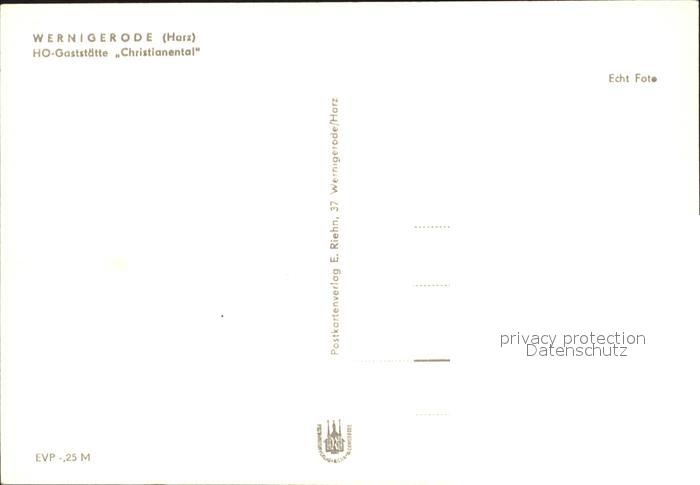72274905 Wernigerode Harz HO Gaststaette Christianental postalisch nicht gelaufen Erhaltung siehe scans KatCode: 11110015085370