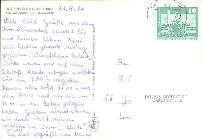 72163980 alte Postkarte Wernigerode Harz HO Gaststaette Christianental postalisch gelaufen Erhaltung siehe scans KatCode: 11110015085370