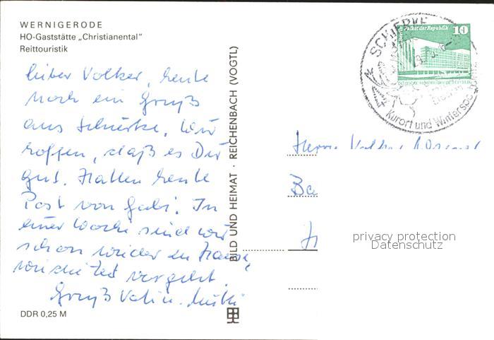 72168782 alte Postkarte Wernigerode Harz HO Gaststaette Christianental Reittouristik postalisch gelaufen Erhaltung siehe scans KatCode: 11110015085370