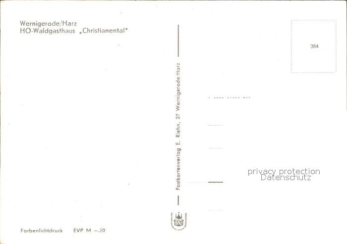 72494132 Wernigerode Harz HO Waldgasthaus Christianental postalisch nicht gelaufen Erhaltung siehe scans KatCode: 11110015085370