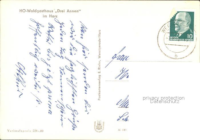 72016318 alte Postkarte Wernigerode Harz HO Waldgasthaus Drei Annen postalisch gelaufen Erhaltung siehe scans KatCode: 11110015085370