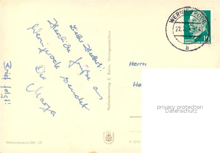 73741401 alte Postkarte Wernigerode Harz Holzgeschnitztes Haus a. d. 17. Jahrhundert postalisch gelaufen Erhaltung siehe scans [LiesaD40] KatCode: 11110015085370