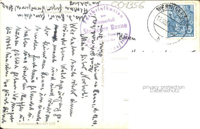 71924427 alte Postkarte Wernigerode Harz Hote Steinerne Renne postalisch gelaufen KatCode: 11110015085370