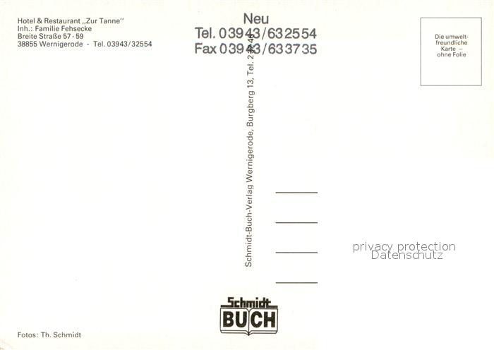 73644565 Wernigerode Harz Hotel Restaurant zur Tanne Hotelbar Fremdenzimmer Rathaus postalisch nicht gelaufen Erhaltung siehe scans [FriedD77] KatCode: 11110015085370