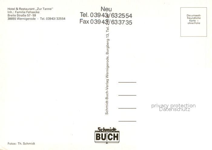 73663648 Wernigerode Harz Hotel Restaurant Zur Tanne Hotelbar Fremdenzimmer Rathaus postalisch nicht gelaufen Erhaltung siehe scans [FriedD77] KatCode: 11110015085370