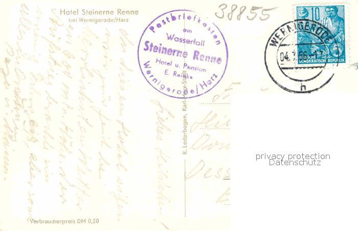 72634713 alte Postkarte Wernigerode Harz Hotel Steinerne Renne postalisch gelaufen Erhaltung siehe scans [KathaD79] KatCode: 11110015085370