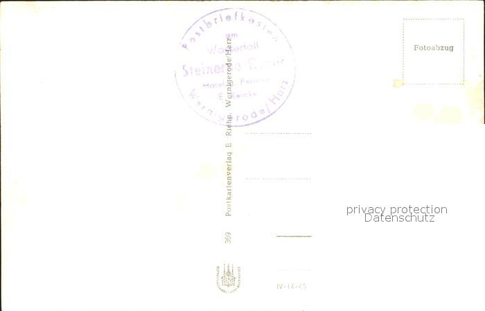 72006945 Wernigerode Harz Hotel Steinerne Renne postalisch nicht gelaufen Erhaltung siehe scans KatCode: 11110015085370