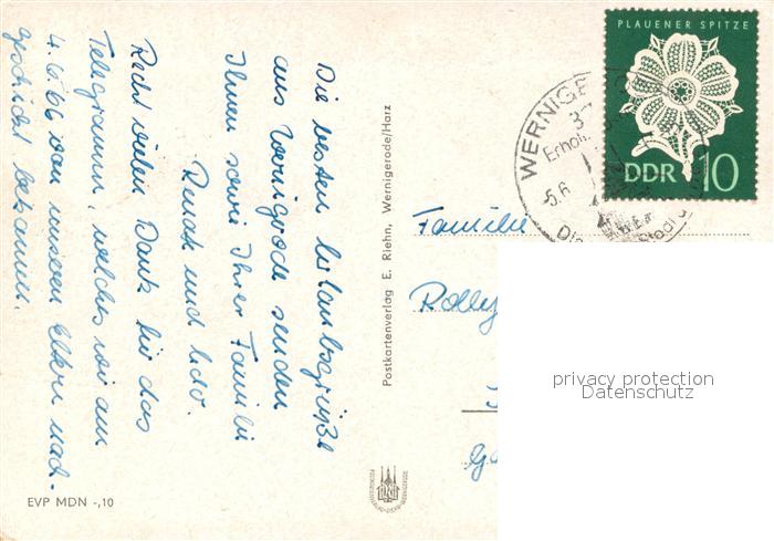 73739509 alte Postkarte Wernigerode Harz Konsum Grossgaststaette Storchenmuehle postalisch gelaufen Erhaltung siehe scans [FriedD77] KatCode: 11110015085370