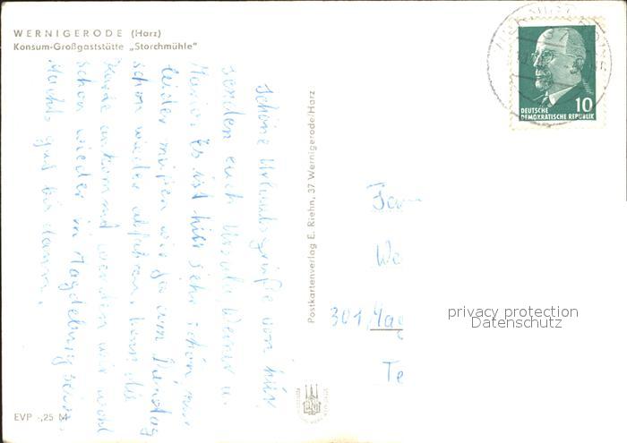 72079289 alte Postkarte Wernigerode Harz Konsum Grossgaststaette Storchmuehle postalisch gelaufen Erhaltung siehe scans KatCode: 11110015085370