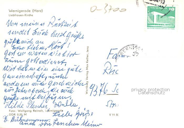 73750826 alte Postkarte Wernigerode Harz Liebfrauenkirche postalisch gelaufen Erhaltung siehe scans [WerneD78] KatCode: 11110015085370