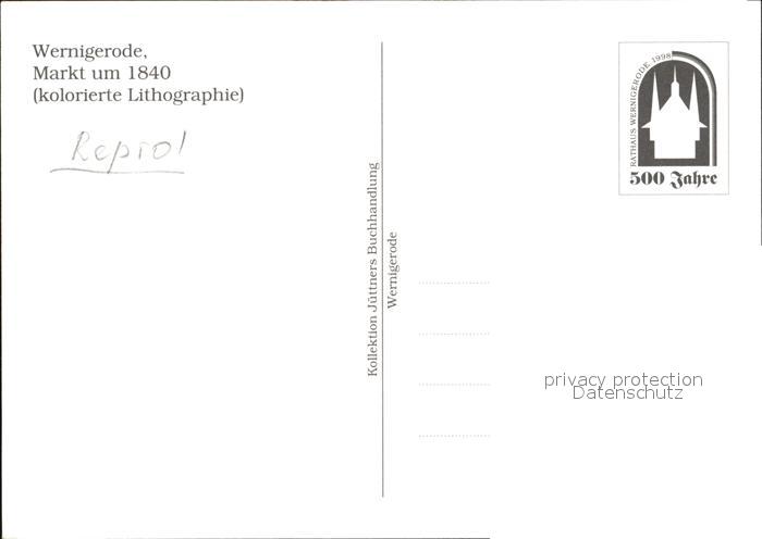 Wernigerode Harz Markt postalisch nicht gelaufen Reprokarte (modern) Erhaltung siehe scans