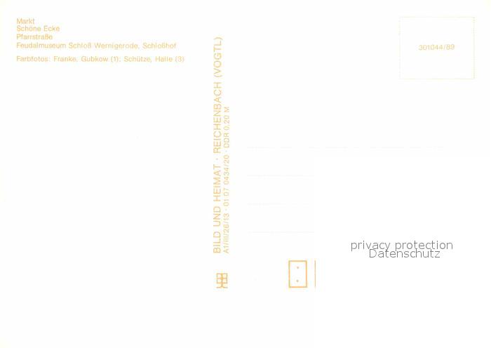 72848883 Wernigerode Harz Markt Schoene Ecke Pfarrstrasse Feudalmuseum Schloss Schlosshof postalisch nicht gelaufen Erhaltung siehe scans [FriedD77] KatCode: 11110015085370