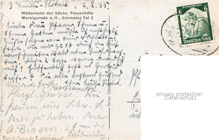 43253625 alte Postkarte Wernigerode Harz Muetterheim der Saechsischen Frauenhilfe postalisch gelaufen Bahnpost Erhaltung siehe scans [FriedD77] KatCode: 11110015085370