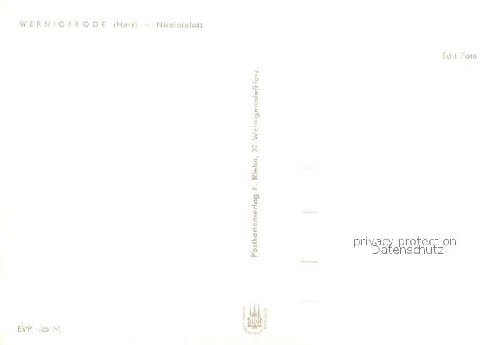 73034034 Wernigerode Harz Nicolaiplatz postalisch nicht gelaufen Erhaltung siehe scans [KathaD81] KatCode: 11110015085370