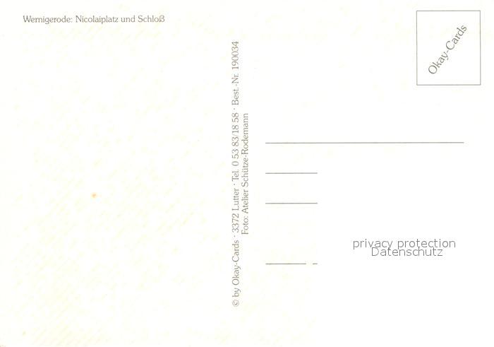 72991169 Wernigerode Harz Nicolaiplatz und Schloss postalisch nicht gelaufen Erhaltung siehe scans [FriedD77] KatCode: 11110015085370