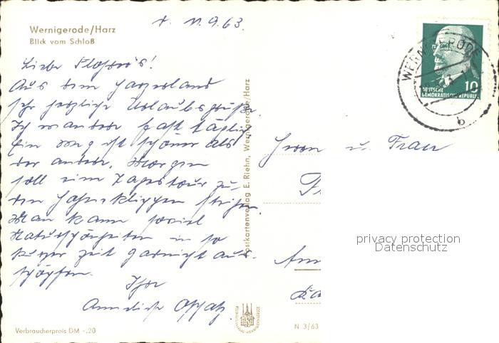 72342510 alte Postkarte Wernigerode Harz Panorama Blick vom Schloss postalisch gelaufen Erhaltung siehe scans KatCode: 11110015085370