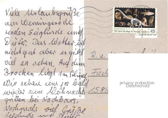 74036817 alte Postkarte Wernigerode Harz Partie im Stadtzentrum am Abend postalisch gelaufen Erhaltung siehe scans [FriedD77] KatCode: 11110015085370