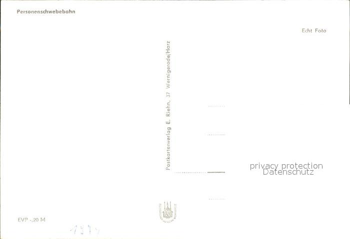 72407945 Wernigerode Harz Personenschwebebahn postalisch nicht gelaufen Erhaltung siehe scans KatCode: 11110015085370