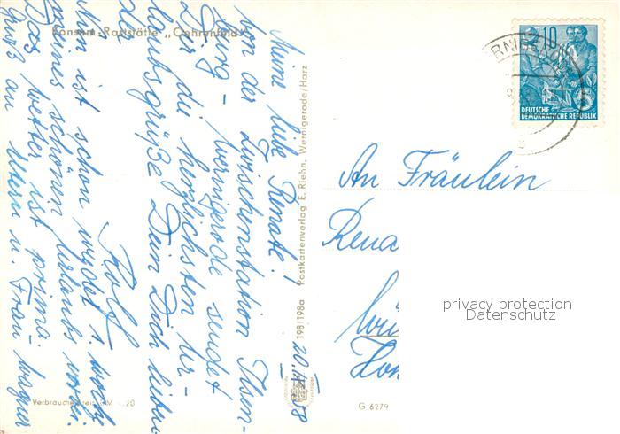 73776287 alte Postkarte Wernigerode Harz Raststaette Oehrenfeld postalisch gelaufen Erhaltung siehe scans [FriedD77] KatCode: 11110015085370