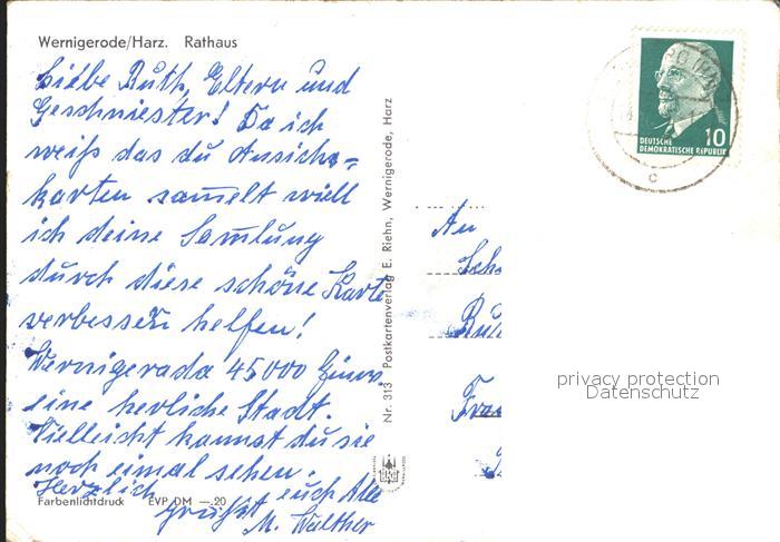 72326108 alte Postkarte Wernigerode Harz Rathaus postalisch gelaufen Erhaltung siehe scans KatCode: 11110015085370