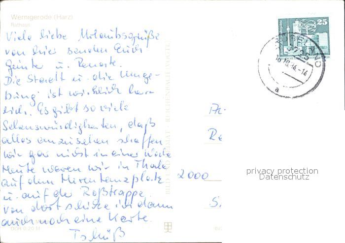 72311410 alte Postkarte Wernigerode Harz Rathaus postalisch gelaufen Erhaltung siehe scans KatCode: 11110015085370