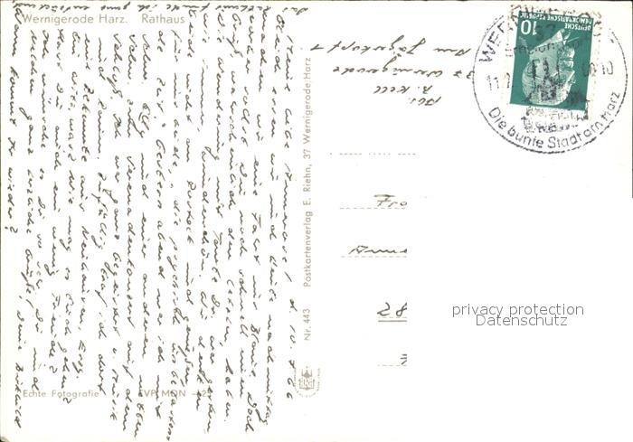 72120457 alte Postkarte Wernigerode Harz Rathaus postalisch gelaufen Erhaltung siehe scans KatCode: 11110015085370