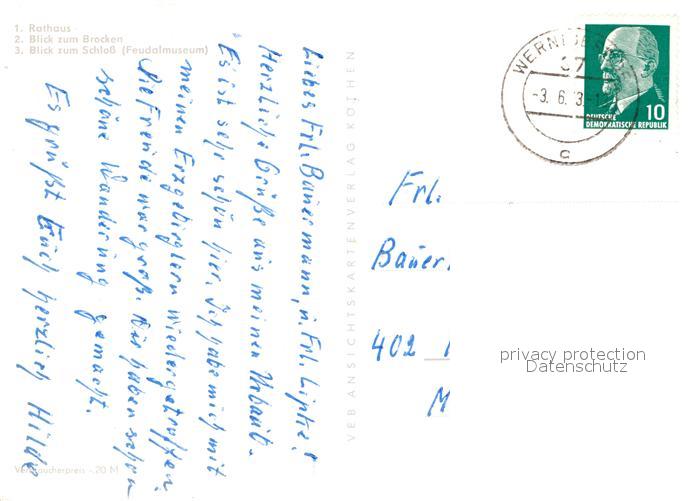 72971387 alte Postkarte Wernigerode Harz Rathaus Blick vom Brocken Schloss Feudalmuseum postalisch gelaufen Erhaltung siehe scans [FriedD77] KatCode: 11110015085370