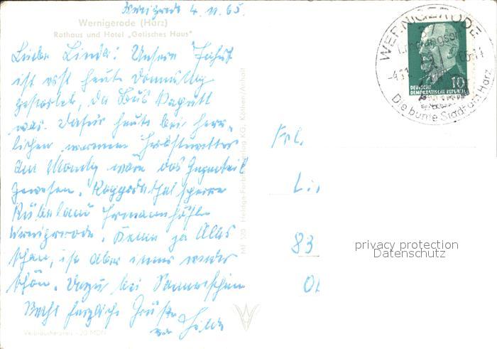 72417015 alte Postkarte Wernigerode Harz Rathaus Hotel Gotisches Haus postalisch gelaufen Erhaltung siehe scans KatCode: 11110015085370