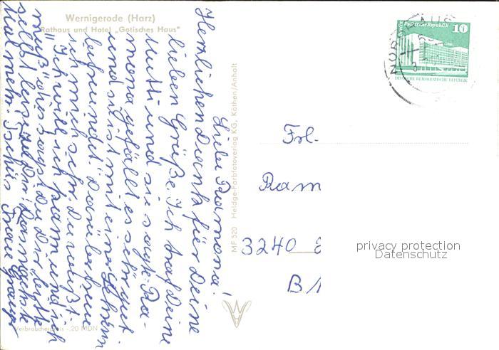 72421971 alte Postkarte Wernigerode Harz Rathaus Hotel Gotisches Haus postalisch gelaufen Erhaltung siehe scans KatCode: 11110015085370