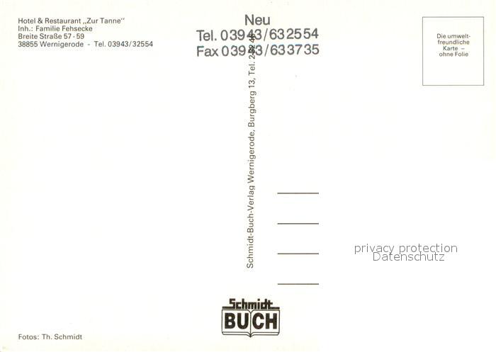 73734272 Wernigerode Harz Restaurant-Hotel Zur Tanne Bar Zimmer Rathaus postalisch nicht gelaufen Erhaltung siehe scans [LiesaD40] KatCode: 11110015085370