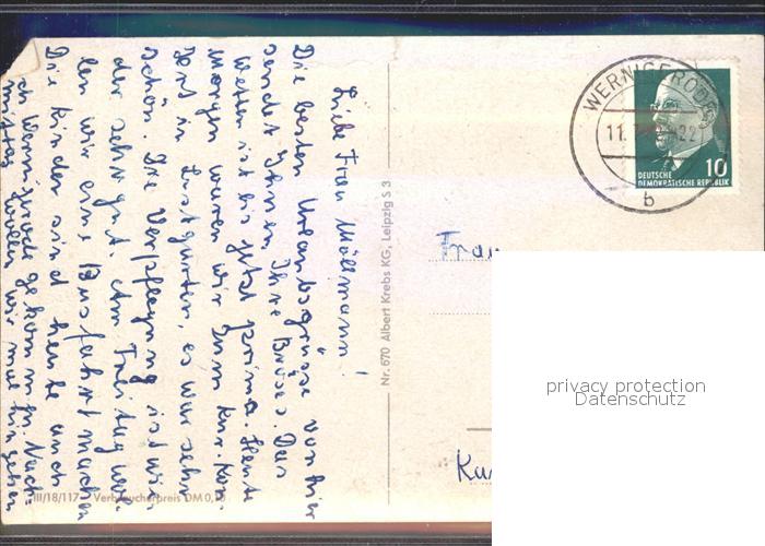 72119326 alte Postkarte Wernigerode Harz Schiefe Haeuschen postalisch gelaufen Erhaltung siehe scans KatCode: 11110015085370