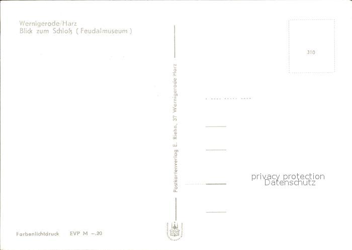 72311533 Wernigerode Harz Schloss postalisch nicht gelaufen Erhaltung siehe scans KatCode: 11110015085370