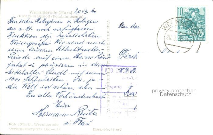 72376991 alte Postkarte Wernigerode Harz Schloss Feudalmuseum postalisch gelaufen Erhaltung siehe scans KatCode: 11110015085370