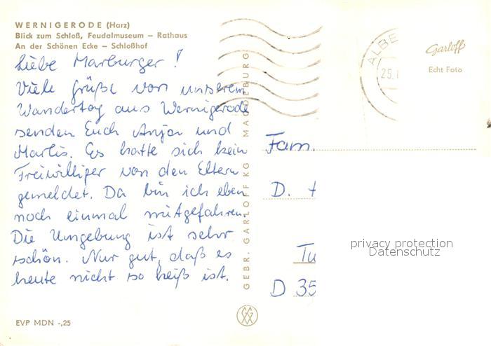 73082330 alte Postkarte Wernigerode Harz Schloss Feudalmuseum Rathaus Schoene Ecke Schlosshof postalisch gelaufen Erhaltung siehe scans [KathaD81] KatCode: 11110015085370